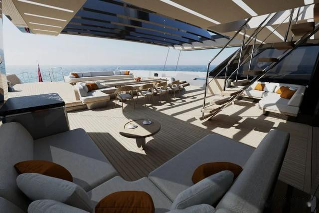 “飞马”号作为其最新力作,集中体现了其创新精神与卓越追求。船体部分采用回收铝合金建造,这艘500GT帆船兼具卓越航海性能与惊艳外观。极简运动风设计配以流线型轮廓与低矮飞桥布局,这艘帆船集性能与风格于一体,配备了螺旋桨能量回收系统和太阳能采集技术,彰显了其环保设计理念。